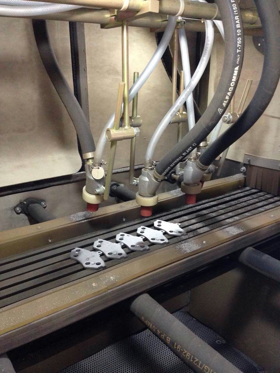 剎車片的生產(chǎn)過(guò)程中質(zhì)量尤為關(guān)鍵,其中最重要的一個(gè)生產(chǎn)環(huán)節(jié),鐵才與剎車片雛形粘合,粘合前需要通過(guò)自動(dòng)噴砂機(jī),才能有效的粘合。